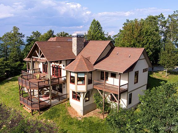 Nestled amidst the tranquil beauty of Lake Lure, this exceptional mountaintop property presents modern and rustic luxury with unrivaled, long range, west facing, panoramic views of Bald Mountain, Hickory Nut Gorge and Lake Lure. Epic cathedral ceilings make a statement & expansive windows flood the home w natural light. Enjoy coffee in the breakfast nook overlooking the pink glow of sunrise kissing the mountains. The luxurious primary suite features a private balcony, ensuite, and a spacious walk-in closet. Lower level boasts a large family room with a wet-bar, living and game room spaces, in-home gym with cork flooring, and a hot tub on the deck! Additional bedrooms, bonus rooms, and bathrooms on the second and basement levels, provide ample accommodations for guests. Most furniture can convey. Enjoy the community fitness center, outdoor pool, and tennis courts - the Vista at Bill's Mountain has amenities galore! Only 10 minutes to dining options, grocery, and the Lake Lure beach!