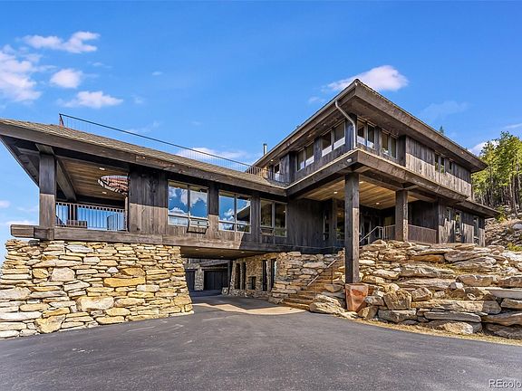 Back on the market with brand new kitchen appliances and tile in the kitchen. Check out the new pictures! This rustic contemporary home captures commanding views of both the city and the mountains. Easy to access Denver and the mountains, on regularly maintained, paved roads, including the circular driveway taking you straight to the entry under the shelter of a well designed portico. With a spacious, open floor plan including two sitting areas, dark stained wide plank wood flooring and a grand entry showcasing a double staircase to the master bedroom and library, you will have to decide where to settle in to enjoy your Colorado lifestyle. You'll love the amazing, spacious master closet and attached laundry room (one of two laundry rooms). This home features three double sided gas fireplaces, a living room with views of the mountains on three sides, a great room with an expansive lofted ceiling adjacent to a fully updated kitchen where the views continue. Two bedrooms and an office are located on the main floor adjacent to a private patio and dog run. Still looking for more space? The lower level has a spacious family room with a gas fireplace and additional space for a guest in their own walkout bedroom. Plenty of storage in the lower level including an extra storage or workspace connected to house by a covered walkway. UPS delivers here everyday and there is no I-70 road noise. The home is located 12 minutes from shopping and dining in Evergreen, 20 minutes to Evergreen Lake, 20 minutes to Denver West shopping and dining, 30 minutes to downtown Denver and less than 1 hour to Winter Park and Breckenridge. On the 4th of July...enjoy firework displays from several different towns.