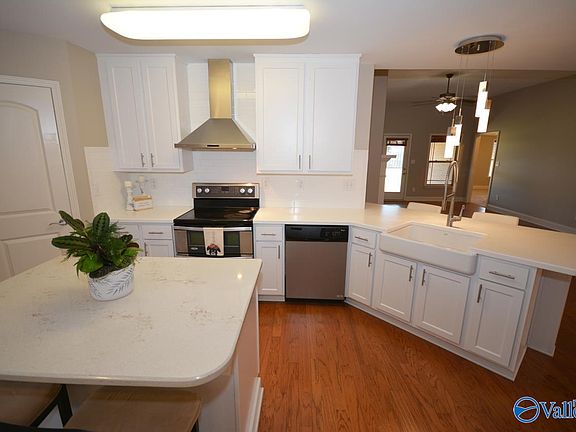 Beautiful hm in Madison w/a stunning, renovated Kitchen! Move in ready, interior just painted, Rainsoft Water Softener, stunning hardwds in main living areas, Kitchen & Master Suite, open floor plan, f'place & so much charm. Isolated Master features 2 walk-in closets, Glam Bth w/soaking tub, dble vanity & separate shower. Huge Kitchen boasts lg island, new cust cabinets w/incredible storage, quartz counters, stainless appliances, pantry, dble oven & SO much more! W'ful outdoor spaces, front & back covered patios, sprinkler syst & privacy fence. Community amenities include clubhouse, pool, exercise facility, tennis, playground & basketball courts. Minutes to Redstone, airport & Town Madison!