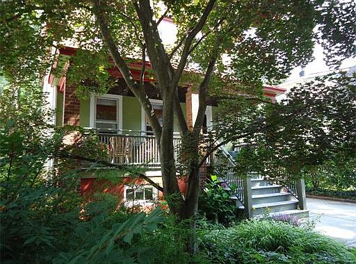 Unpack your bags! So many extras: New roof, all plumbing redone, driveway new, freshly painted, custom cabinets, hand made moldings & kitchen counters, updated electric, newer baths, mahogany front porch, finished attic level, back set of stairs. Wood floors throughout. CAC on 2nd & 3rd floor. BR on 1st floor.