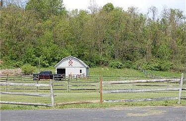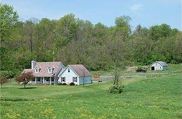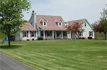 Enjoy a piece of heaven...Original owners have loved the private, country living found here on over five lovely, level acres. Open floor plan, w/first floor master w/double-sided log-burning fireplace. Beautiful EIK w/lovely cherry cabinets,trash compactor,island w/seating,beige ceramic flooring.Gleaming hardwood flooring. Wonderful hot tub room.Upstairs bonus room is private den/study.Second level boasts two additional alcoved bedrooms w/Jack and Jill ceramic bath.Barn w/three stalls,fencing,bath,electric.