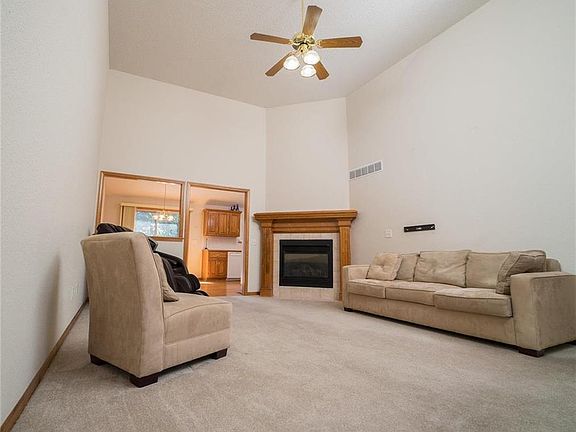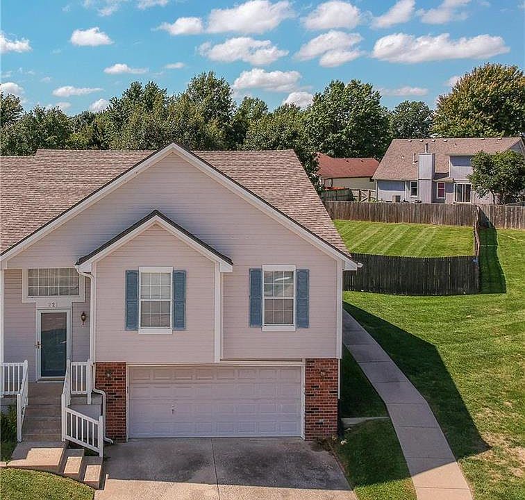 This half duplex has 3 bedrooms and 2 baths in Lake Shore Meadows is within walking distance to the local grocery store, fast food restaurants and Raymore City Hall and Police station. The large living room has an open high vaulted ceiling and a gas fireplace. The master bedroom has a walk-in closet and features his-and-her sinks in the master bathroom. The dining room and kitchen have hardwood floors, and the kitchen is spacious with plenty of storage in the cabinets. The very large back yard is fenced.