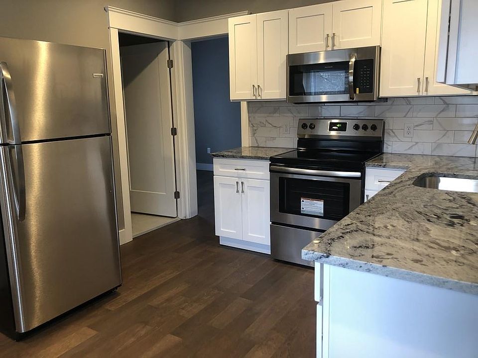 Brand new and spacious! This second floor unit boasts a beautiful kitchen with a walk-in pantry, gleaming granite countertops, soft-close cabinetry, and stainless steel appliances. Three large bedrooms and a full bathroom with a tub. Brand new vinyl wood flooring throughout. Heated by gas, which is the tenant's responsibility. Fenced in backyard. Be the first to call this HOME! Good credit, references, and steady verifiable income is required for approval. Available for occupancy March 1st. *First showings will be Saturday 2/22 12-2pm*