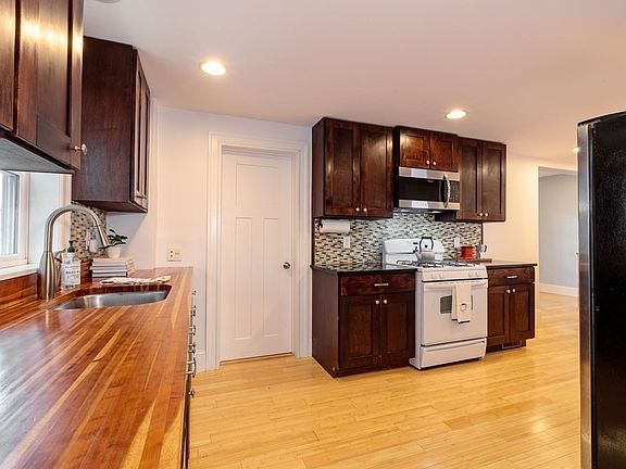 This thoughtfully, redesigned 2-level, 1st flr unit (2019) has 6 rooms/2 beds/2 full baths. The main flr has a living room w/ bay windows and is off an open plan foyer, as is the primary bdrm & full bath. The open foyer leads to a nicely sized eat-in kitchen. The layout makes for pleasurable cooking w/ its SS appliances, quartz countertops, & dining area. The kitchen conveniently opens to a deck & shared yard—lovely for outdoor dining. This floor is completed w/ an office nook by the French doors to the deck. The stairs off the kitchen/dining area lead down to 315sf of finished space with a 2nd bedroom, full bath, & laundry, There is a window in the below grade space that allows natural light to come in, an egress window, & full-size door to the yard. The unit has 1 unobstructed pkg spot & is .2 miles/4 blocks to the Magoon Sq. GreenLine Station & .6 miles to Porter Sq. shopping/the RedLine/commuter rail. Walk Score® of 93. By car convenient to Rts 16,2,60,93,28,38 & Logan.