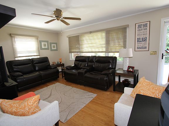 Move in ready in Shark River Hills. Pristine 3 Bedroom 1 1/2 Bath Cape on a meticulously landscaped lot with in-ground sprinkler system that backs up to the woods for privacy. Remodeled Kitchen with Granite Counter Tops and Stainless Steel Appliances. Wood floors throughout. Formal Dining Room, Bedroom/Home Office and a Full Bath on 1st Floor. Full Finished Basement with a quaint built in bar for entertaining. Spacious Master Bedroom has half bath. Kitchen leads out to a peaceful, maintenance free Trex Deck for relaxing and summer barbecuing. Never worry again about a power outage with a Generac instant on generator just installed this year. A short walk down the street to the Shark River Hills Marina. 5 minute ride to Local Beaches. Seller can accommodate quick closing.