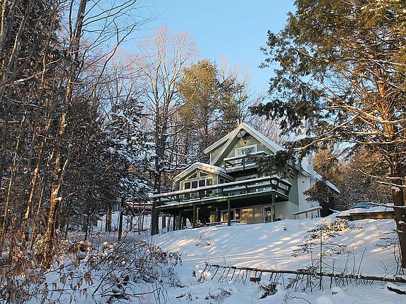 Newly renovated 3BR/2.5BA Chalet in the woods with great mountain views. New floors, windows, all new furnishings. The chalet boasts three floors of living space; a stylishly finished walk-out lower level w/a a large mudroom, an open family room with a custom bar, + LL 1/2 bath with a brand new stacked washer and dryer. 1st Fl - The main level features an open living area with a stone hearth, wood-burning fireplace, dining room, a newly remodeled kitchen with new appliances and breakfast bar, a wood-paneled queen size bedroom & full bath. All new flooring, a fully remodeled bathroom & freshly painted. A beautiful deck overlooks woods & mountains in the distance. The 2nd/top floor features a very large Master bedroom w/a gas fireplace, skylights & its own balcony; hall bath w/ jacuzzi tub & separate shower, and an additional 3rd bedroom. Part of Alpine Haven community w/ amenities such as swimming pool, tennis court & trail system. Conveniently located an easy 5-minute drive to Jay Peak. Turnkey investment property, great for Airbnb.