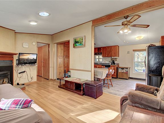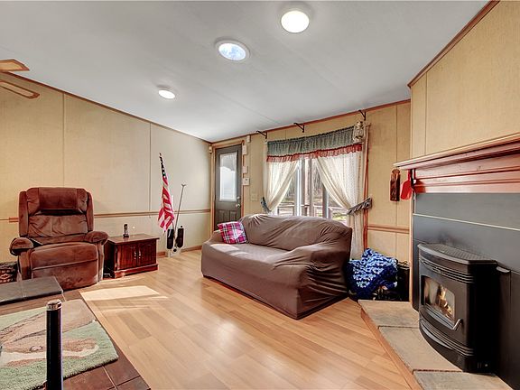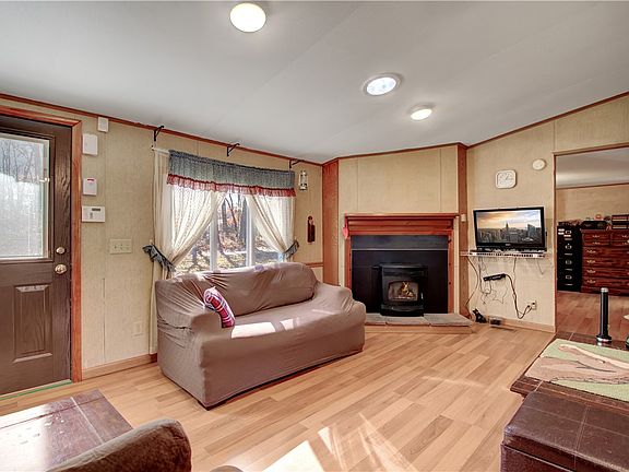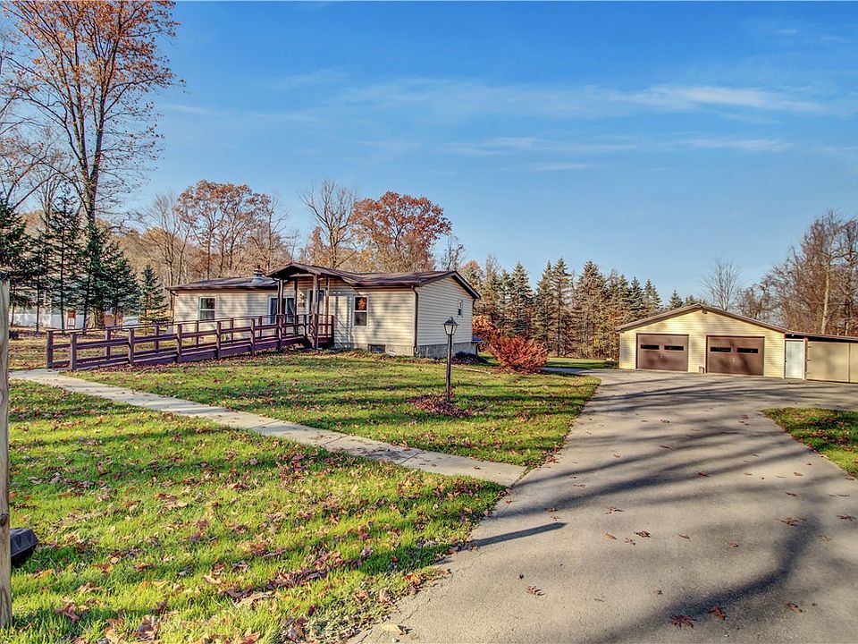 Peace and tranquility abound in this 5 bedrooms, 2 bath home on 2.66 acres. Sit on your covered back deck surrounded by wooded beauty and all the wildlife around there. Open feeling with skylight in the vaulted ceiling living room with a fireplace. The owner uses a pellet stove instead of a fireplace. Dining Room and kitchen combo with a pantry, dishwasher, and refrigerator. The laundry room off the kitchen is so nice. Nice size master and large master bath with a whirlpool - like tub. The basement has 2 more bedrooms. One currently a sewing room. Plenty of privacy in this home. Property has a large 2 car garage with an addition for your toys. 2 Sheds for storage, and a fire pit. The property has a water treatment system. Sump Pump and french drains. Roof replaced 2015. Newer siding on house and garage, newer furnace/a/c Gutter Helmet and ice guard &drip edge. All this tucked in the woods, yet close to shopping,and university,