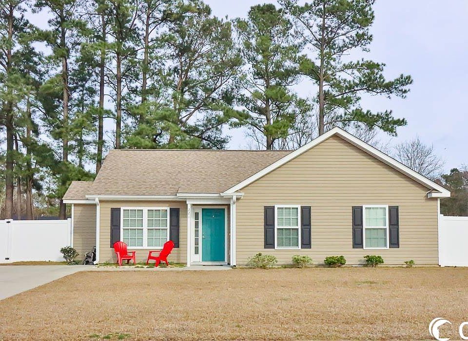 Welcome to 221 Holden Dr, located in the highly desirable Bristol Pines community of Myrtle Beach! This stunning 3-bedroom, 2-bathroom home is the perfect place to call home. As you enter the bright and airy living room, you'll be greeted by high vaulted ceilings and an abundance of natural light, creating a warm and inviting atmosphere. The living room is perfect for entertaining guests or simply relaxing at the end of the day. The kitchen is a chef's dream, with a breakfast bar, pantry, beautiful countertops, stainless steel appliances, and ample cabinet storage. Cooking and meal preparation will be a breeze in this well-appointed kitchen. The master bedroom is a true oasis, featuring Tray Ceilings, a walk-in closet, and plenty of natural light. The en-suite master bath boasts double sinks and a spacious shower. The backyard is the perfect place to spend time with family and friends, with a unique layout that provides ample room on either side of the house., perfect for grilling out, hosting gatherings, or simply enjoying a quiet moment in the fresh air. Bristol Pines is located near 707, which puts you just minutes from the beach, Market Commons, Coastal Grand Mall, Broadway at the Beach, as well as golfing, shopping, dining, and entertainment. This home truly has it all, and you won't want to miss your opportunity to make it yours!