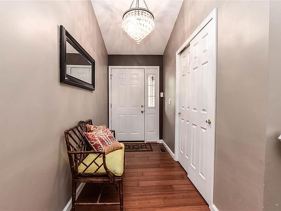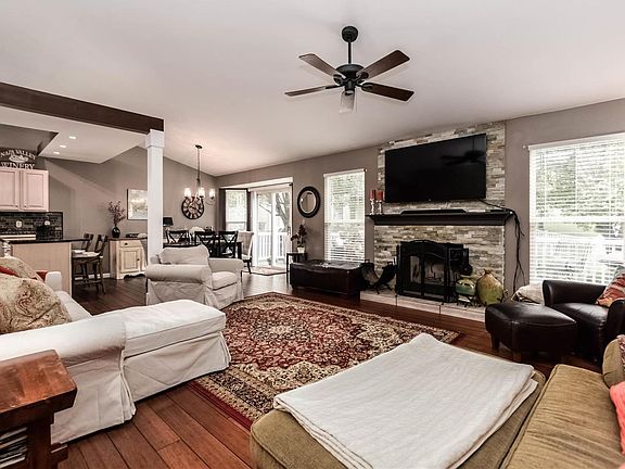 Gorgeous ranch in the sought after Hutchings Farm Subd!You will be drawn in by the amazing curb appeal.You will love the open floor plan, soaring ceilings in the great rm w/stunning stone fireplace flanked by flr to ceiling windows & beautiful wood flrs.The updated kitchen features granite countertops, breakfast bar, custom stone backsplash, pantry, recessed lighting & SS appls.Breakfast rm has a modern chandelier, large bay window w/sliding door the opens out to a lrg composite deck perfect for entertaining.Main flr master suite has vaulted ceilings, walk in closet, picture window for lots of natural light & bath w/soaking tub, shower, modern vanity & fixtures.2 addl nice sized bedrms & a full updated bath on the main level.Prof fin LL features a family rm w/bar area, an updated bath & office or 4th bedrm.This home also has a main floor laundry, 3 car gar & steps away from the subd pool. Newer siding, roof, granite & wood flrs are just a few of the updates this home has to offer!!!