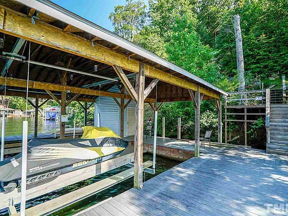 You want a log cabin with a view like you are in the mountains, but also on a lake... now you have found it!! The views from the porch looking over the lake are spectacular! Take the golf cart down the path to the water with the large 2 slip boat dock. Let your guest, or kids stay in the guest house which has just enough room for a bunk bed, toilet & sink. Want a get-a-way on the lake just down the road from the triad or triangle, well, this is it! With right offer will come fully furnished & Golf cart!