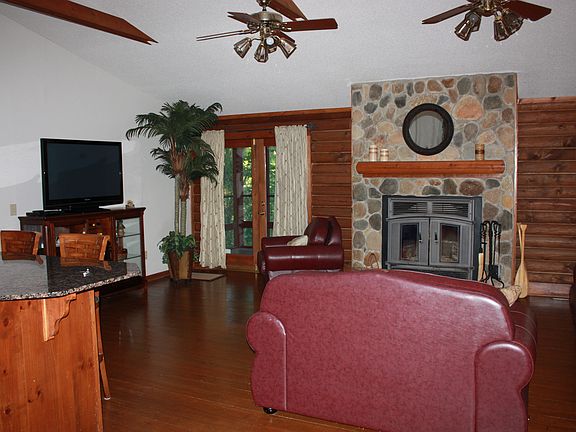 This Lake Hartwell waterfront log home is located in the desirable restricted subdivision of Inlet Pointe Cove. Just minutes off I-85 at Exit 14, this is one of the easiest locations for those commuting to Greenville for work, and it's only 15 minutes from Clemson University! Exterior features of the home include a large covered front porch, metal roof installed in 2019, screened porch & open deck on the main level, covered deck on the lower level, fenced area in back, and a paved path leading to the lake. The covered dock is on deep water, and this quiet protected cove is ideal for swimming. Inside, the great room has vaulted ceilings with exposed beams and a wood burning stone fireplace. Very Open Floor Plan! MOSTLY FURNISHED! Exception list to be provided. GOLF CART STAYS!