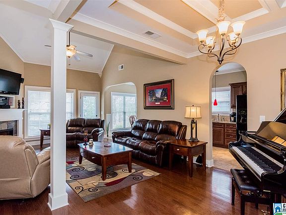 This BEAUTIFUL home in Oxmoor Ridge is ready for immediate possession. Home is clean as a whistle and upholds your attention the moment it is within view. Great curb appeal, 4 side brick & entertaining deck on back of home is UNBELIEVABLE! The location of Oxmoor Ridge is top notch offering very close proximity to Dtown/UAB/Samford. So close, yet so peaceful being nestled below the RTJ Golf Trail of Oxmoor Valley. Some areas of golf course can be seen from deck! You'll hear birds chirping not cars in this backyard! The house itself offers so much more than most! Hardwood floors, granite countertops, tile backsplash, details in both dining area ceiling and eat in area walls. FRIDGE STAYS! Nice pantry closet located in kitchen. Great room area has soaring ceilings with mounted TV REMAINS along with media box for entertainment accessories. Spacious master with HUGE walk in closet. Double vanity in master bedroom with upgraded jetted seating tub and separate stand up shower. Great house!