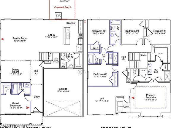 The Turner is a two-story open plan home with six bedrooms and four and a half baths. There is a guest suite, equipped with walk-in closet and a full bath, off of the entry. The great room has access to the formal dining room, kitchen and eat-in area. The kitchen features a large island and walk-in pantry off of the garage entrance. There is also ample under stair storage. The upstairs primary bedroom features a large walk-in closet, dual linen closets and a five-foot walk-in shower. Two of the secondary bedrooms share a full bathroom. The other two secondary bedrooms share a jack and jill bathroom. Loft and laundry room are also conveniently located upstairs.