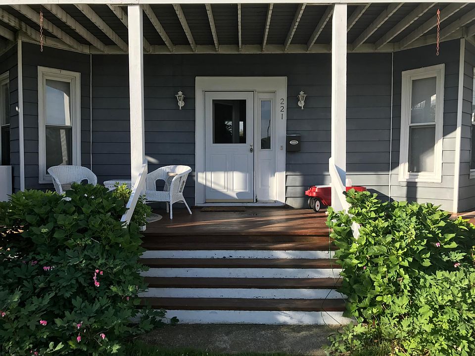 Lake-front, Classic, Victorian Year-Round Rental. The first-floor apartment includes a spacious rocking chair front porch, less than 2 blocks from the beach. Spectacular lake-views. 2 bedrooms, 1 bathroom. Modern kitchen, living room, large walk-in closet, and extra storage cabinet space. A laundry room with brand new washer/dryer. Beautiful oak hardwood floors throughout. Gas Heating. Ceiling fans in master bedroom and living room. Sorry NO PETS, NO SMOKING. Other features: off-street parking for one car. Gas and electric included. Beautiful front yard. Year round lease available September 1st. Rent= $1650/month + $2475 security deposit. Quarterly sewer tax ($140). 650 or better credit score. Credit check fee: $30. Owner Pays for Gas & Electric. Tennant pays $140 per quarter for sewer.