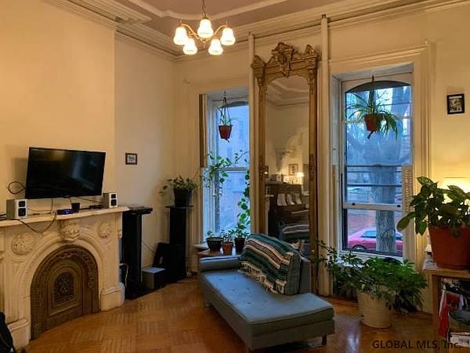 Massive 1 bedroom apartment with soaring cathedral ceilings in beautiful brownstone building less than one block from Washington Park and walking distance to Capitol/ Empire State Plaza. Other features include hardwood throughout, marble fireplaces, ample closet/ storage, back deck with yard access and shared laundry. Heat/ hot water included. Tenant pays electric. Pets TBD. Available May 1.