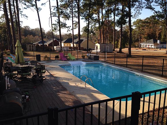 3 bedroom 2 bath Lee County home in quiet neighborhood. Hard wood floors in living and dining room, tile in kitchen and bathrooms, carpeted bedrooms. Kitchen has island with stainless appliances. Fireplace in living room. 9 ft ceilings throughout. Jetted tub in master bath. Detached 24x26 two car garage. 16x32 salt water pool. Irrigated lawn. Fenced back yard with pool fenced in separately.