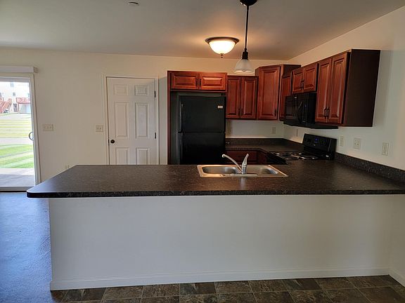 This END-UNIT townhouse offers a modern kitchen with breakfast bar, all appliances & access to the rear patio for easy outdoor cooking or relaxing. You'll also find a generous-sized living room, 3 bedrooms (one with a walk-in closet) & 1.5 bathrooms (main bath has a double-bowl vanity). A basement for extra storage, 1-car garage, gas heat & cool central air. A washer & dryer is also included. 1 PET ALLOWED WITH FEES & RESTRICTIONS (Must be Under 25 Pounds at Maturity) Want to take a look at this home? An approved application is required to schedule a showing and is FREE to do. 1 year contract, renews month to month after first year.