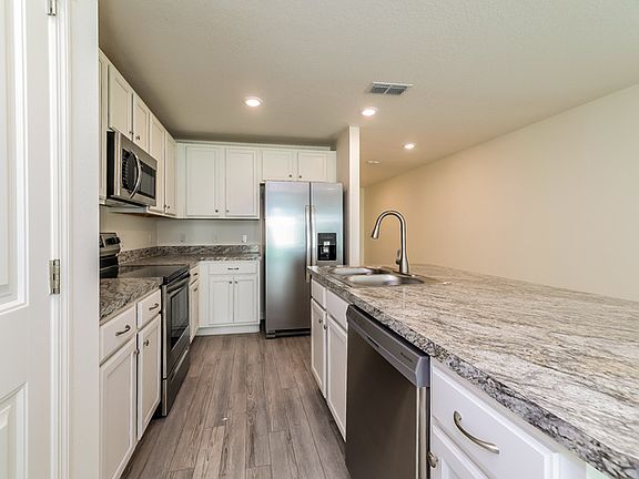 Welcome to your modern oasis in Auburndale, FL! This exquisite 3-bedroom, 2-bathroom home, built in 2022, offers the perfect blend of contemporary style and comfort. As you approach, you'll be greeted by a spacious garage and charming landscaping, creating a warm and inviting curb appeal that sets the tone for what awaits inside. Step through the front door and into the heart of the home, where an open floor plan awaits. The living space features luxurious LVP flooring and neutral tones throughout, providing a versatile canvas for your personal style. The kitchen is a chef's dream, boasting granite countertops, stainless steel appliances, white cabinetry, and a convenient breakfast bar. Whether you're preparing a gourmet meal or enjoying a casual snack, this kitchen is sure to impress. Retreat to the primary bedroom, a peaceful sanctuary complete with an attached full bathroom featuring dual sinks and a spacious walk-in closet. With its serene ambiance, it's the perfect place to unwind after a long day. Outside, the backyard offers plenty of space to relax and entertain, with a spacious concrete patio perfect for outdoor gatherings or simply enjoying the Florida sunshine. Don't miss your chance to experience the epitome of modern living in Auburndale. This information is deemed reliable, but not guaranteed. All measurements are approximate. Actual product and specifications may vary in dimension or detail. Images are for representational purposes only. Some programs and services may not be available in all market areas. Price and availability are subject to change without notice. Contact a company leasing representative for complete details. Equal Housing Opportunity. This property allows self guided viewing without an appointment. Contact for details.
