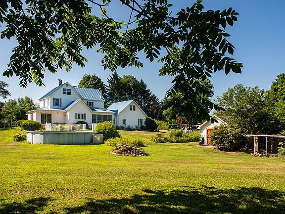 Your dreams may have just become reality, in form of this beautiful 1862 colonial farmhouse on 6+ acres, complete with rocking chair front porch, lake frontage, woods to roam, and a pool to swim in; all within walking distance to the park and town of Red Hook. The house offers ample space to spread out while keeping the cozy and comfortable feel of a farmhouse. The kitchen, dining room, and living room flow nicely into each other with double French doors connecting the rooms. Bonus 3rd floor finished attic is ideal as a playroom or overflow guest quarters. The finished space above the garage could serve as a painting studio, yoga or exercise room or writer's space. The many improvements include a new 20-gage metal roof, leach field, well pump, and much more. On the outside, you'll find apple trees, strawberry, blue and blackberry bushes; the sprawling lawn wraps around a vegetable garden, extending all the way to the woods where a small walking path leads down to a 26-acre lake stocked with bass, pickerel, crappie and sunfish. Only 9 homes have access to the lake and there is no public access. The town park and pool is a short walk away. You can walk to town (1.5 miles), and Bard college (2-miles). This is a fantastic property with too many features to list. List of improvements: Roof 2018, 20 gauge metal Septic leach field in 2019 Jet pump 2018 Oil tank 2017 90 gallon hot water heater Porch decking and posts replaced 2014 Added cherry tongue and groove hardwood 1 inch thick wide board floors harvest from trees on property to kitchen, dining room, and study (treated with Australian Oil) Replaced pool liner, sand filter, and chemical free treatment system in 2017. High quality 24' Johnny Weissmuller Pool. The Pellet stove above garage is as is