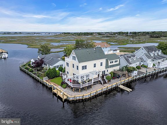 JUST REDUCED $100,000....the owners are ready to pack. This is the Waterfront house with all of the bells and whistles. A magnificent 5 bedroom, 3 bath, beautiful custom waterfront home, that is surrounded on 2 sides by bulkhead and lagoons. As you approach this home, set on a quiet dead end, your eyes first capture the manicured landscaping, a paver driveway and walkway with a grand staircase leading up to a beautiful wraparound porch. Before taking the stairs up to the front door you will notice the quality workmanship and fine details in the beautiful roof, the copper gutters and the IPE wood porch decking. As you enter the home the first floor boasts a dining room, a kitchen that opens up to a living area with a fireplace surrounded by built-ins and 5 Anderson sliding doors all leading to a portion he outdoor living space. The first floor also has an office and updated full bath that is also accessible from the deck. This level has newly finished hardwood floors to complete the first level details. On the second level there are 4 generous sized bedrooms to include one that is super-sized with 2 closets and is presently used as an office. The second floor also has a laundry room, inclusive of a utility sink with plenty of cabinets for storage. The entire third floor is the primary suite, complete with walk-in closet and en-suite consisting of double sinks, a whirlpool tub and access to a terrace where you can enjoy some relaxation. The views from this level are magnificent. This level overlooks the bird sanctuary, the bay and on a clear day even the Barnegat Lighthouse. The views from most rooms are priceless and spectacular. The backyard is complete with a brand new Bulkhead completed in May 2025, a pergola, pavers and a custom brick fireplace, all surrounded by incredible plantings and exceptional blooming flowers. There is a private outdoor shower and the new bulkhead on two sides of the property. There is a two car garage and a crawl space with a concrete floor for exceptional storage space. Newer HVAC, kitchen granite, and bathroom updates complete this beautiful and unique waterfront home. This is a Coming Soon listing so make your appointments now.