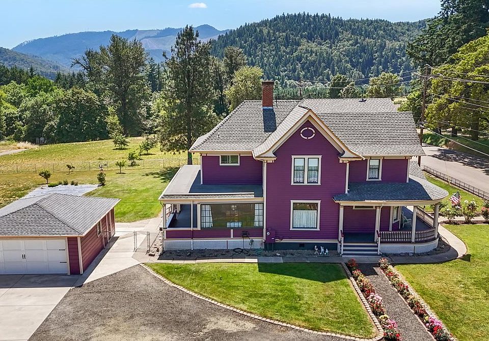 Restored Victorian, .89 Acre Lot! Located in the charming small town of Riddle, this home has been extensively restored over the last 5 years and is in excellent condition inside and out. Move in Ready NOW! It is the historic John Bouseman Riddle House, built in 1894 by Mr Riddle, the town founder and successful entrepreneur in Southern Oregon. There are 3 very large outbuildings, including a 20x24 detached 2 car garage, 30x45 4 car garage/shop, and 18x45 RV garage! Park 6 cars and RV or boat. There is additional parking pad behind the shops and tons of parking in the driveway. Located on nearly 1 acre, the lot is level, fenced and fully usable. The views from nearly every window and the large porches overlook the hills and pastures of the Cow Creek Valley. 9'-4" ceilings on the main level, 9' ceilings upstairs, 4 big bedrooms with very large closets and 1 full bath are all upstairs. The Main level has the formal parlor, large dining room, kitchen with eating area, spacious den, full bath, laundry, and 8x11 Sunroom (not included in total SF). The large den on the main level has an attached bath and could be a primary bedroom (or 5th bedroom) on the Main level. There is also a cement basement, 13x19 and bone dry. The home boasts all the Queen Anne style of the era - large porches front and back, oval attic window, gingerbread trim, wood floors throughout, etc. Among the many upgrades: New HVAC system, Extensive Electrical and Plumbing Replacement, Sewer line, new paint inside & out (by LBP certified painter), Original Fir floors restored, new kitchen & appliances, bathroom remodels, extensive landscaping and property clearing & fencing, and so much more. It is so difficult to find a Victorian home restored, not remodeled. This property has potential as a Wedding Venue, Bed and Breakfast, Small Business home base, or just lovely small town home. Call to visit this charming, classic home today. Seller is Listing Agent