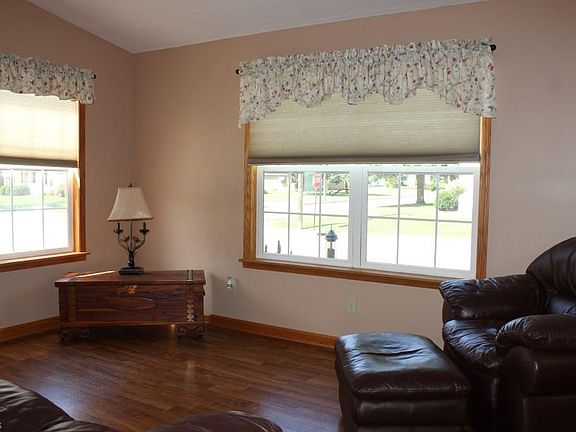 Delightful inside and out with 3 bedrooms, 1 bath, is this updated ranch built 2005 with first floor laundry including washer & dryer, applianced eat in kitchen, & vaulted living room on pretty landscaped lot* Updates, including but not limited to, flooring (throughout), 6 panel oak doors, wood trim, granite, kitchen sink, refrigerator, microwave, central air, upgraded furnace, garage service door, garage door & opener, screened gazebo, stamped patio & insulated attic* Neutral décor throughout & pristine move in condition set on a corner lot with decorative vinyl fence, 1.5 car heated attached garage with storage cabinets, utility sink with hot and cold water and access to private patio with gazebo* Convenient location on quiet street* Sellers utility budget.... electric $61.98/ mo. & gas $57.00/ mo.* Immediate possession* Move in and enjoy*