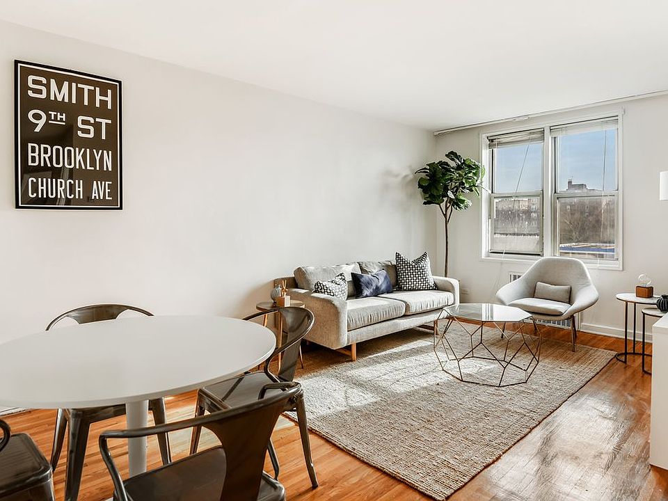 This incredibly spacious one bedroom apartment in the coveted Windsor Terrace neighborhood offers a unique opportunity to live in a turnkey home in a well-maintained elevator building with a vibrant sense of community and excellent amenities - all within walking distance of the best that brownstone Brooklyn has to offer. The sprawling third floor home spans a full 680 square feet, with gleaming hardwood floors running throughout, complemented by lots of natural light streaming in via multiple exposures. A large foyer opens into the open-plan living and dining area which provides generous room for living and entertaining. The separate kitchen offers ample storage as do the multiple closets throughout the unit. The extra large bedroom can easily fit a king sized bed. Windsor Terrace is a beloved Brooklyn neighborhood that is minutes from the tranquility and activity of Prospect Park, as well as an assortment of cafes, gourmet markets, restaurants and favorite spots like Brancaccio's, Hamiltons and Jaya Yoga. Conveniently located near the F & G trains, you are a short train ride away from Manhattan making the busy city life accessible while being able to enjoy the suburban life in this beautiful home.