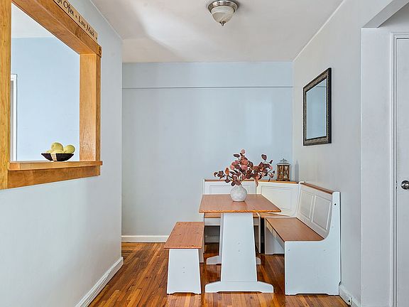 Spanning just over 800 square feet on the fifth floor, this spacious home boasts gleaming hardwood floors, lofty 8-foot ceilings, and abundant closet space. The oversized living room provides ample room for both relaxation and entertainment, while the well-conceived kitchen-to-dining area passthrough ensures seamless hosting. Sunlight bathes the bedroom with southern exposure, creating a naturally lit atmosphere.