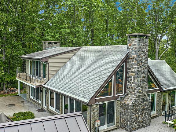 Set on a sheltered hillside, this serene property is approached from a private drive and rests on 45 idyllic acres. Natural woodlands, sunlit clearings, and an extraordinary residence comprise this distinctive venue unparalleled for its serenity and beauty. Architecturally designed to capture the essence of its vistas and surroundings, the home is a refreshing blend of tradition and modern finishes. Multiple levels of finished living space are enhanced with hardwood floors, vaulted ceilings, and abundant windows for views of the pool and the hillside beyond. The expansive kitchen with large island opens to a dining room for easy entertaining. The primary bedroom on this level offers another wood-burning fireplace for cozy evenings. A half bath and additional bedroom round out this floor. The loft suite is a luxurious hideaway with a balcony for meditation and bird’s eye views of the changing seasons. The finished lower level includes a recreation room, family room, additional bedroom, and full bath. A large stamped concrete patio surrounds the inground pool, perfectly placed for warm afternoons or an evening swim beneath the stars. Swift arrival to I-78, schools and shopping, and Easton’s burgeoning restaurant scene and city center add to the appeal of this uniquely impressive property.