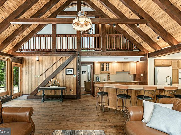 • Air Filter System, Ceiling Fan(s), Combination Kitchen/Dining, Combination Dining/Living, Bar, Bathroom - Stall Shower, Recessed Lighting, Kitchen Island, Eat-in Kitchen, Open Floorplan, Exposed Beams, Entry Level Bedroom, Beamed Ceilings, 2 Story Ceilings, Vaulted Ceiling(s), Wood Ceilings