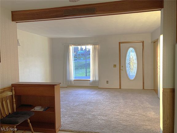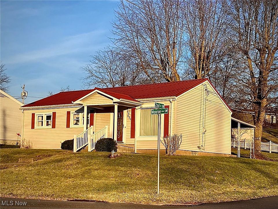 Located on a nice corner lot in a quiet, peaceful neighborhood yet conveniently right in town, this home has comfortable living space without being too much to maintain. The backyard features a large flowerbed with shrubs and several perennials under large shade trees. This home has plenty of parking with an attached carport as well as additional parking in the paved driveway and paved off street parking area along the street. The living room is open to the dining area and kitchen, with a hallway leading to three bedrooms and the bathroom. One of the bedrooms has a laundry hookup to allow for single floor living. The basement includes another toilet, shower, and utility sink as well as another laundry hookup. The structure has been well maintained with a metal roof over the house and carport, vinyl siding and windows, and reinforced basement walls. This property has been a loved home and gathering place for many years, but is ready for a new owner to call it home.