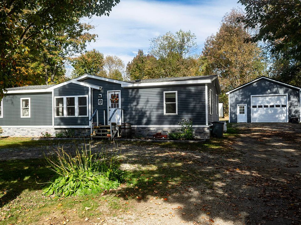 Welcome to your peaceful slice of small-town living! Nestled on a cozy country lot minutes away from all that Wilton & Farmington area offers. This beautifully rehabbed mobile home offers the perfect blend of comfort, style, and functionality. Major updates completed in 2022, vinyl siding w/insulation, new windows, new front door, Rehab primary bath. Newly built insulated 24x24 garage/with a 12 x 20 garage door. Private yard with fireplace perfect for summer evenings under the stars, roasting marshmallows with friends. Schedule a tour today to see the possibilities firsthand!