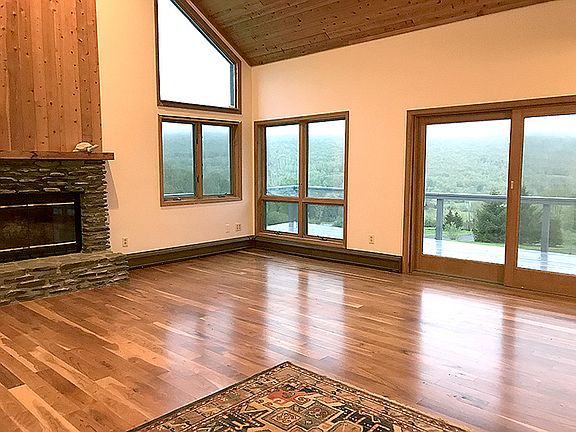 Glorious top-of-the-valley contemporary with jaw-dropping views. Totally accessible at end of town maintained road, but sited perfectly for privacy and OPEN skies. HUGE deck is already wired for a hot tub. Comprehensive renovation now complete. OPEN main floor living space with cathedral ceiling. ALL NEW: stainless appliances, Shaker kitchen cabinets, renovated bathrooms, new ROOF, freshly painted inside and OUT. NEW rustic cherry hardwood floors on main floor. Floor-to-ceiling fireplace. Master Suite upstairs with full bath. Two-car attached garage. Newly finished full walkout basement with wall of windows, glorious views, new kitchenette and FULL bath. Brick fireplace on one whole wall. Wildlife visits in all seasons. A home that will give you a sustaining sense of place, amazing adventures and memories to enhance a lifetime. Make it your own!