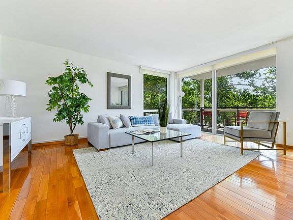 Sophisticated mid-century modern condo surrounded by lush green space and only half a mile from the heart of Harvard Square, offering ideal Cambridge living. Through the entry way, you are greeted by beautiful hardwood floors and sweeping views of the Charles River through floor to ceiling windows. An open living/dining area allows for flexible space to entertain, with sliding glass doors to a private balcony overlooking the River. Well appointed kitchen with maple cabinets and stainless steel appliances. There is an expansive master suite and a second bedroom and full bath. This home is ideally located a matter of yards from Long Fellow Park, a half mile to the Cambridge Common, and 0.7 miles to Huron Village.