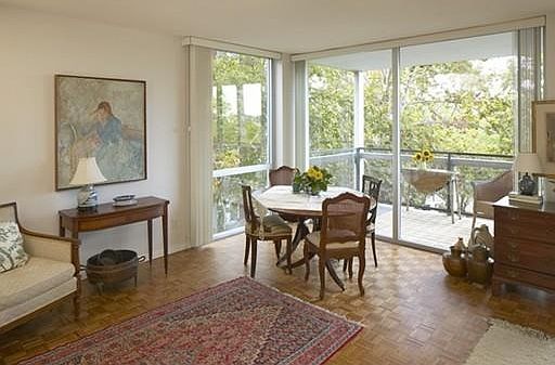 Harvard Square. Care-free/cared-for lifestyle in the sought-after luxe Riverview. Rare corner residence has floor-to-ceiling glass walls, and views of the Charles River in all four seasons. Whether in the updated kitchen, which opens to the living/dining room, or from the master bedroom on the the same level with its oversized closet and en suite bath, you will enjoy the same stunning river views with its seasonal splendors. Just a few steps up, on the entry level, the views from the second bedroom overlook the lovely, expansive yard, which is private for Riverview residents and is used for social gatherings, grilling, picnicking or the enjoyment of reading. The second bedroom with its own bath is wonderfully set apart for privacy and could be used as the master bedroom or an office. The 30' balcony provides abundant space for outdoor entertaining and enhanced views. Good closets; extra storage; CA; parking--snow removed from your car; 24-hr concierge; near the T and all amenities.
