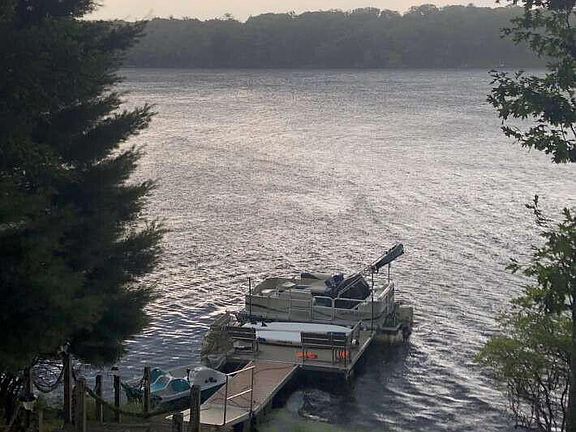 Discover serenity in the Wild Acres community, Dingmans Ferry, PA, by an 81-acre lake. This 4-bedroom, 3.5-bath haven blends luxury & comfort. The primary bedroom boasts an ensuite & a roomy walk-in closet. Enjoy open-concept living, with a kitchen, dining area, & living room flowing into a spacious family room, offering panoramic lake views through expansive windows. Abundant storage, ceiling fans, & central air ensure year-round comfort. A pellet stove sets the mood for cozy evenings. Step onto the deck, complete with a covered area. The kitchen is equipped with stainless steel appliances & a wine refrigerator. This property is fully furnished with high-quality pieces. It includes a dock, a pedal boat, & 16' pontoon boat w/electric motor. Pre-qualified only. Proof required. Cash offers, Beds Description: Primary1st, Baths: 1 Bath Level L, Baths: 1/2 Bath Lev 1, Baths: 2 Bath Lev 2, Beds Description: 2+BED 2nd