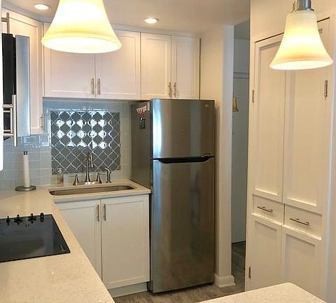 Stylish and newly renovated beach efficiency offered for a 7 month lease beginning February 2018. Quartz counters, wood-look tile floors, new cabinetry, stainless appliances, recessed lighting, updated bath with wood ceiling. Building offers pool, residential laundry room, and is gated for security. Unit comes with assigned parking spot. Located in a quiet community one block from beach access. This contemporary condo is steps away from Jacksonville Beach as well as great shopping and restaurant options.(Photographed furnishings are owners and not available with unit. Unit will be rented unfurnished for price listed. Owner is willing to provide alternate basic furnishings for a monthly upcharge.)