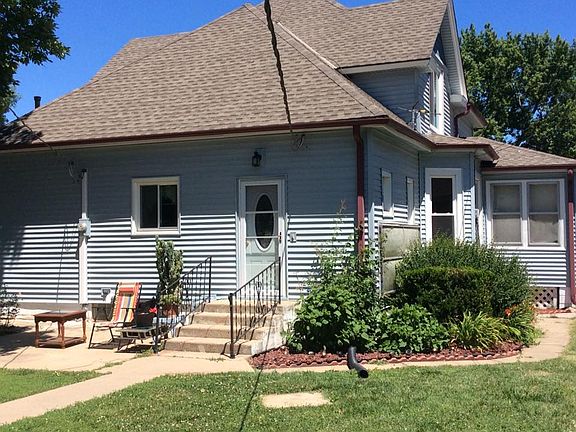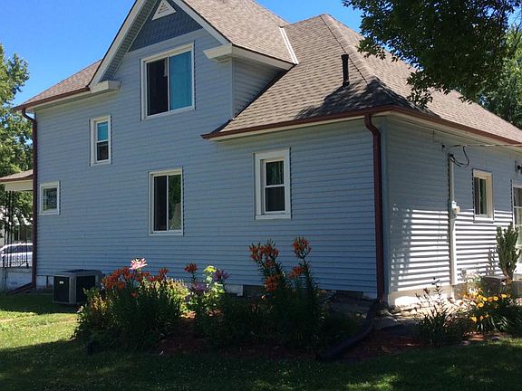 We will be featuring a video of our home soon. 4 bedroom 1 1/2 bathrooms. 2 original stained glass windows still in house when built in 1906. House has the rest of windows new with warranty, shingles with new plywood deck with 43 years warranty and new siding with warranty. New central air and Gas Tank less water heater with soft water. Kitchen and Bathroom have new vinyl flooring with LOTS of Cupboard space in both . Main floor has the original wood floors in dinning room and living room sanded and polished by professionals. Sunroom available. House was built in 1906 all original woodwork framing and doors. New Stove with cabinet top Microwave and Refrigerator with icemaker and filtered water in kitchen included. Lots of cupboard space in kitchen and bathroom. Upstairs, original banister and stairs, and original wood floors. Available upstairs is 2 large bedrooms ( we are putting up fresh drywall with foam spray insulation and new ceiling fans in each) and 1 small bedroom, closets in all bedrooms. A 1/2 bath is available upstairs. 1 Bedroom downstairs or you can use it as a large office or playroom. Homemade built shed with a smoker and two car garage. House has new siding, roof and windows with warrentys. A place in the backyard for a garden. Excellent school system, 1 block from grocery store, 2 blocks from swimming pool, 1 block from all needs from the main highway. 1/2 mile to school. Corner Lot with a line of Peony's. We don't want to leave this beautiful home but must, as we need a different location for our jobs. Ask for Barb or Kieth