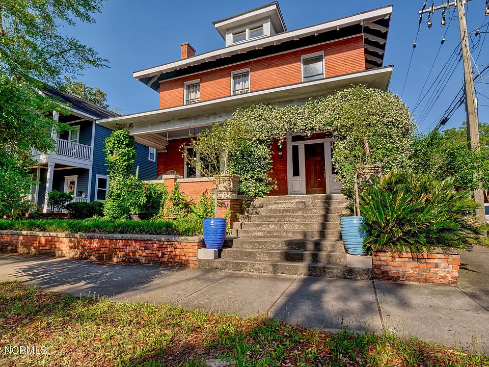 This is special! A majestic and handsome brick home with detailed architectural elements in the very desirable downtown Historic District. Built in 1920 this beautiful home has an abundace of original character yet has the modern vibe and livabilty that is move-in ready to enjoy! Elegant and detailed craftmanship this gorgeous home boasts a welcoming entry/foyer with spacious living and dining room with decadent wood paneling, oversized pocket doors and sunlight that will warm your heart. 3 bedrooms and 2.5 baths with plenty of closets and storage space atypical of this era. Large covered front porch perfect for entertaining and private two-story back porch for enjoying. Just blocks outside your front door to all the exciting ammenities of downtown Wilmington from The Cape Fear River to Soda Pop District to Brooklyn Arts District this location has it all! A rare find and a MUST SEE!