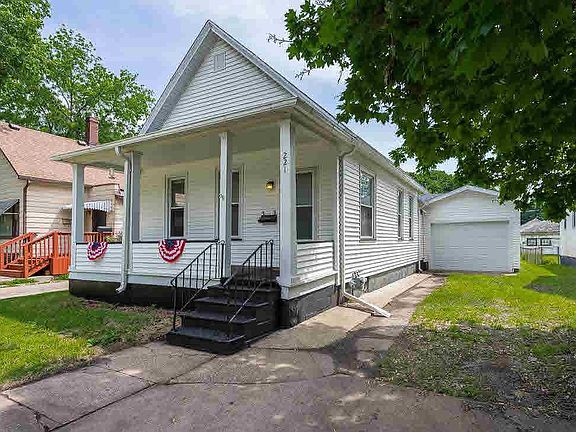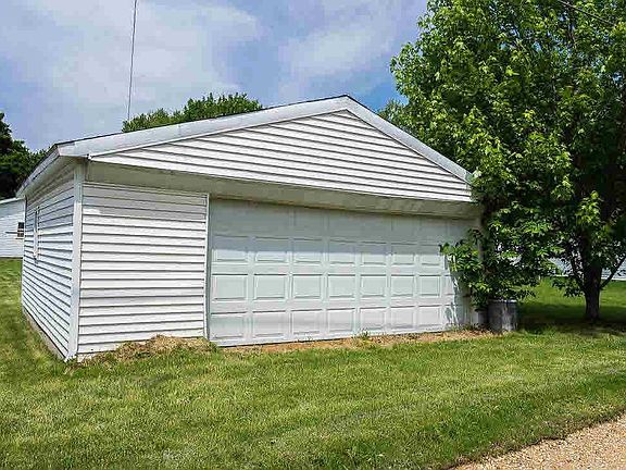 Adorable 2 Bedroom house with 3 car garage!!! There is a 1 car insulated attached garage and a 2 car detached garage. The house has a nice front porch to sit and watch the traffic on. Large eat-in kitchen and good sized living room. New Roof Winter 2019. Owner is a licensed realtor in the State of IA/IL
