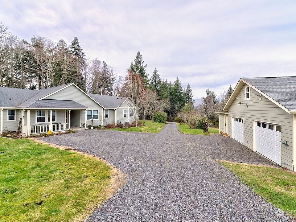 First Time on Market! Single Level home spanning 2710 sqft (3bd/1.75 bath), includes an attached In-laws quarters (1bd/1bath). The clever separation b/w living spaces allows for several uses such as a home business, caregiver, or rental. The 6+ acre private parcel offers garden, green house, chicken coop w/fenced area, Re-built outbuilding w/1 cvrd prkg + hobby loft, 40x28 shop; make a great woodworking shop and 30x40 Shop w/carport & loft; Every mechanics dream! Home offers 9ft ceilings*Spoon grooved laminate flooring*Office*Primary w/dbl closets and 3/4 bath, Granite vanity top. Kitchen/GR has B/I TV cabinet*Hi-Tech B/I Speakers*FS Woodstove to keep you cozy. Granite counters, SS appliances, Island w/wine chiller & More! Appointment only.