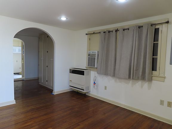 Not your typical studio apartment. It's a detached bungalow where the bedroom has walls to adjoining rooms, with open doorways. Immaculate property. Freshly painted throughout, near new kitchen cabinets & quartz countertops, near new kitchen & bathroom flooring, hardwood floors in living room & bedroom, near new shower tile & tub, near new built-in microwave, new kitchen recessed lights, window treatments throughout, window A/C unit. Quiet neighborhood. Rent includes water & trash. Tenant responsible for gas & electricity. Street parking. Near shopping & services.
