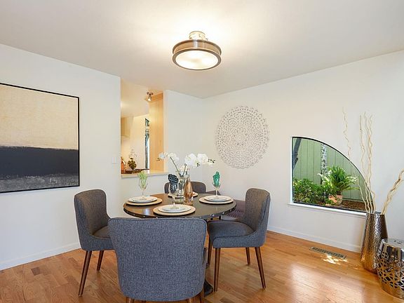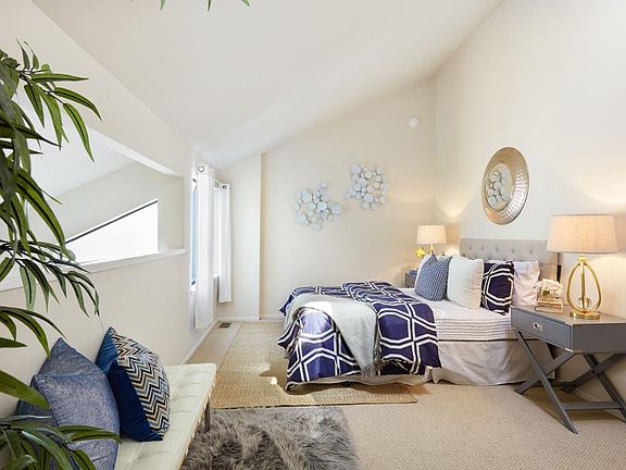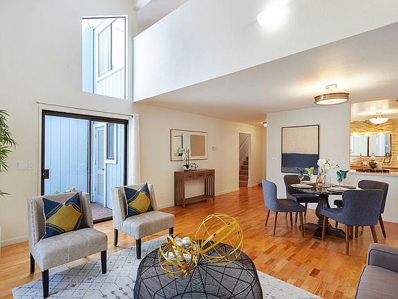 Pride of ownership shines in every thoughtful detail of this newly updated home. Rarely available end-unit feels like a SFH with a private tranquil yard. Being nestled behind the detached shared-garages & assigned parking provides an unexpected quietness to the complex. The designer kitchen offers upscale cabinetry and like new appliances! This inviting floor plan is bathed in natural light and highlighted by dramatic vaulted ceilings & designer paint. Enjoy the tastefully updated bathrooms with dbl vanity & custom enclosure. The top floor open bdrm could be a great office retreat with serene treetop views. Situated in the highly desirable Los Altos High School attendance area this home is just up the street from the newly remodeled and expanded Community Center. Dining and entertainment are only minutes away in both Mountain View & Los Altos downtown areas. Commuters will love the easy-access to Central Expressway, Freeways 101, 85, 237 and Caltrain! A MUST SEE & is move-in ready!