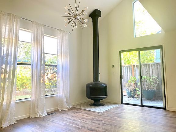 This charming 1,518 sq. ft. upgraded 3-story, 3-bedroom, and 2-bathroom townhouse on a 3,300 sq. ft. lot is an end unit, located in a gated, safe, and quiet complex. Perfect for singles, couples, and families with kids in a pet-friendly community. Property Highlights: - Newly installed wood flooring - Brand new central AC unit for cool summers - Open floor plan with a classic wood-burning fireplace - Airy and bright living room with high ceilings and tall windows - Rare private backyard patio, ideal for outdoor relaxation and BBQs - Modern kitchen with stainless steel appliances and ample storage - Energy-efficient features like LED lighting, on-demand water heater, and in-unit washer/dryer - One pet, such as dog or cat, is welcome with approval - 1-car garage with ample storage and an additional assigned parking spot - Community pool, hot tub, and garden for family fun and relaxation - Located in an excellent school district (Mountain View Whisman School District) - Vibrant wall colors and patterns designed by professionals. All paints are finished. Location: - Close to major tech companies like Google, LinkedIn, and Stanford University - Walking distance to parks, community center, schools, coffee shops, and grocery stores - Minutes from downtown Mountain View with a variety of restaurants - Walking distance to CalTrain station for easy commuting If interested, please reply and introduce yourself, including your occupation/employer and the best number and time to reach you. No sublease allowed. Owner pays HOA dues. Renters responsible for water, utilities and renters insurance. One pet policy. No smokers. No sub-lease.