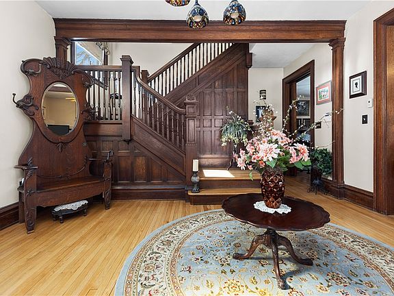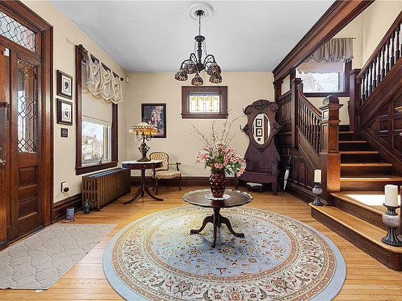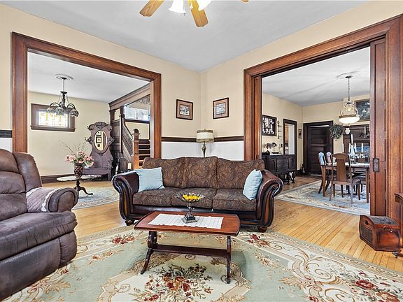 Stunning Victorian with original charm in the historic Borough of East Washington. The beautiful porch and elaborate entry are just the beginning of a home filled with period details and gorgeous woodwork. Home is a Registered Landmark with Washington County History and Landmarks Foundation. The main floor features grand entry & staircase, living room with decorative fireplace, dining room with decorative fireplace, kitchen, half bath, and walk in pantry. The second floor features primary bedroom, 2 additional bedrooms, laundry room, walk in closet, and full bath. The third floor features 2 bedrooms, additional room, walk in closet, and a full bath. Huge basement with plenty of room for storage, a home gym, and more. Updates include boiler, repointing, hardwood floors, carpeting, wiring, appliances, & lighting. Detached garage with long driveway offers plenty of parking. Spacious yard perfect for kids, pets, and more! Home warranty included. A true find in a beautiful neighborhood!