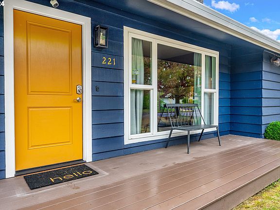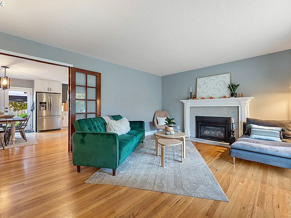 Beautifully updated mid-century ranch with convenience of one level living. The home offers refinished original hardwood floors throughout the majority of the living space. The formal living boasts a period fireplace and large picture window looks out to the front porch. The adjoining dining room and newly updated open concept kitchen with custom cabinets, quartz counter tops, island and stainless-steel appliances flows out to the entertaining size patio and oversized fenced back yard. Relax in the expansive family with ample room for a TV/media area, separated kid’s space and office nook. The home provides three bedrooms and two updated baths, including the primary bedroom with attached bath. The bonus room is currently used as a gym, but could double as office space or fourth bedroom. Newer interior and exterior paint and a new roof in 2023. [Home Energy Score = 4. HES Report at https://rpt.greenbuildingregistry.com/hes/OR10233760]