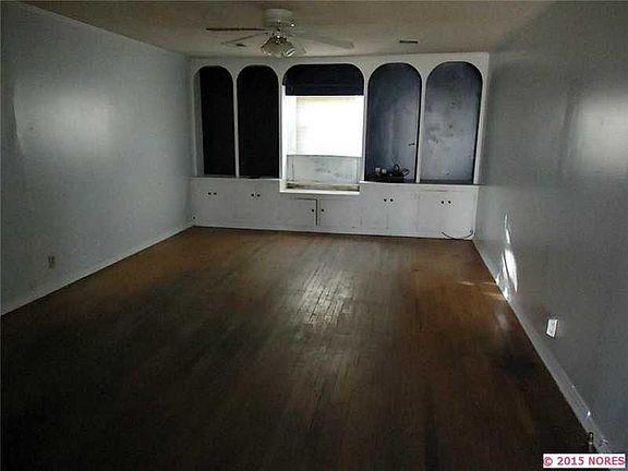 Nice house in need of TLC. Living room has build-ins on one wall. All rooms are nice sized. Hardwood floors. Big back yard with storage building. Utility in garage.