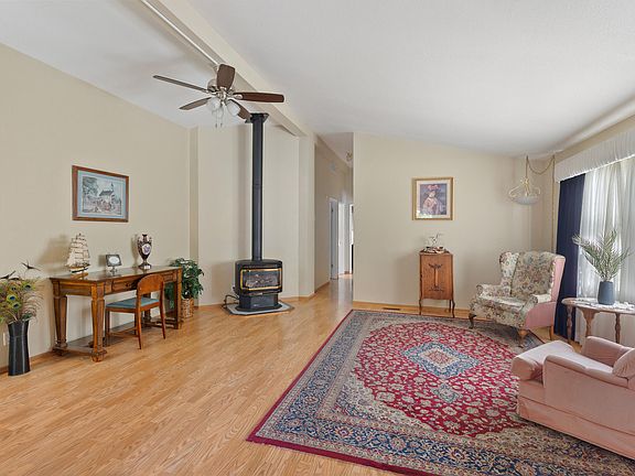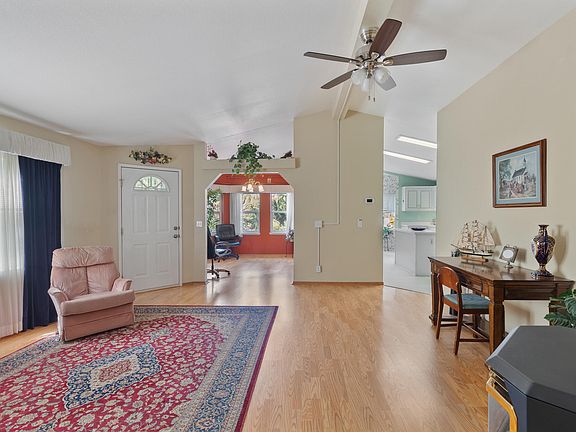 Welcome to the Newest Listing in Highland Heights MHP, A 55+ Community. This spacious 3-bedroom, 2-bath manufactured home offers 1,518 sq ft of comfortable living and end-of-the-road privacy. Built in 1997, the home features a formal dining room with arched entry, a well-appointed kitchen with a center island, and generous counter space—ideal for everyday living and entertaining. The stately primary suite includes a private bathroom with double sinks, a soaking tub, and a separate shower. Updates include stylish laminate flooring and a cozy gas stove in the living room. Step outside to enjoy the private deck, perfect for summer afternoons. The landscaped yard features automatic sprinklers, a storage shed, and a tandem carport. Park is on well water. Monthly space rent is $850. 1 pet, must be park approved