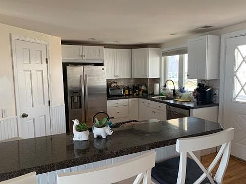 THIS IS A 9 MONTH RENTAL Waterfront Furnished 3 bedroom/2 bath home in Hull, MA available SEPT 2021 to MAY, 2022, $2,450 +utilities. Kayakers dream! This RENOVATED beautiful, waterfront home is located in the historic seaside town of Hull, MA. Hull is 18 miles south of Boston and borders Hingham and Cohasset. There is a local commuter boat that services downtown Boston (Marriot Long Wharf) in approximately 20 minutes, as well as a commuter rail train to downtown Boston. This waterfront home has panoramic ocean and water views and is situated across from Hingham's World's End. This furnished 3 bedroom, 2 bathroom home is located at Sunset Point, one of the most sought-after areas of Hull. This home has been completely renovated both interior and exterior. Beautifully landscaped with perennial gardens. Features include: open, airy living area, state-of-the-art amenities, 2 breakfast bars, and top of the line appliances. Hardwood floors throughout, Central. Air wrap-around farmers porch fire pit, full laundry facilities, brand new generator (Kohler), private driveway, off-street and on-street parking. Non-smoking. Pets negotiable. By owner. Available only SEPT 2021 to MAY, 2022, $2,450 +utilities. Kayakers dream!