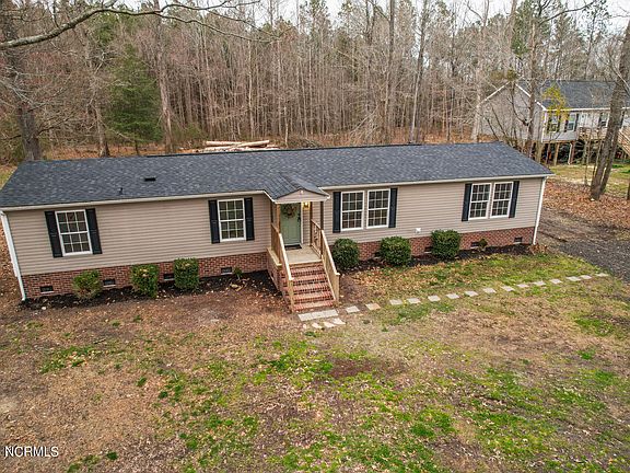 Welcome Home to Country Living! Located at the end of a quiet street directly over the border into the Gibbs Woods section of Knotts Island is this Home situated on a large lot with mature trees lining the rear. Updates and upgrades include new bathrooms, new kitchen, new flooring, new roof, plumbing upgrades, and more! Enter onto your inviting front porch. Foyer is open to secondary/formal living space that could be office/play room. Updated kitchen has freshly painted cabinets, granite countertops, stainless appliances and more! Open to dining room and large great room! Off kitchen is mud/laundry room that leads to backyard shed and entertaining space. Off great room are three large bedrooms and hall bath. Off front living room separate from the other bedrooms is the large primary suite with WIC and spacious ensuite bath with dressing area. Call this Home Today!